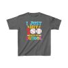 Shop 100 Days Baseball kids Shirt. The fabric is 100% cotton for solid colors. Polyester is included for heather-color variants. These fabrics are prime materials for printing. The shoulders have twill tape for improved durability. The collar is curl resistant due to ribbed knitting. There are no seams along the sides.